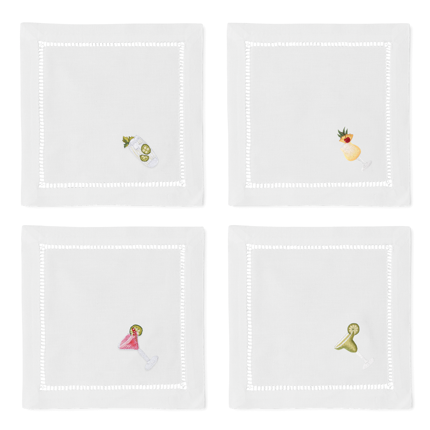 Hand embroidered cocktail napkins on 100% cotton, finished and hemstitched by hand.